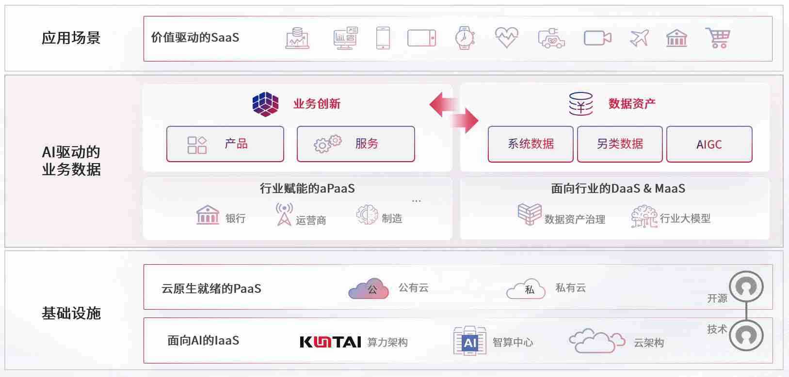 数字时代,,,围绕企业数字化转型的关键要素,,,988钱包数码开创性的提出数云融合战略和技术体系框架,,,着力在云原生、、、数字原生、、、、AI原生和信创产业上架构产品和服务能力,,,为处在不同数字化转型阶段的快消零售、、、汽车、、金融、、、、医疗、、、政企、、教育、、运营商等行业客户提供泛在的敏捷IT能力和融合的数据驱动能力,,,,构建跨界融合创新的数字业务场景和新业务模式,,助力企业级客户建立面向未来的核心能力和竞争优势,,,,全面推动社会的数字化、、、智能化转型升级。。